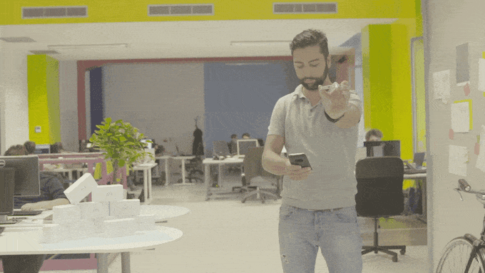 • Flying mode, where the device is held horizontally and replaces a classic controller. Once you’ve found the perfect positioning for the shot, AirSelfie stays still, thanks to the hovering function.